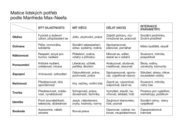 Lidských potřeb je 9. Způsobů jejich naplnění nekonečno