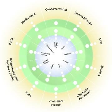 Účastníci*ce za odpovědi získávají body, na základě kterých pak vzniká vizualizace. Ta konkretizuje, v jakých oblastech činnost firmy přispívá, nebo naopak brání tomu, aby Češi a Češky žili*y v ekologicky bezpečné a sociálně spravedlivé společnosti.