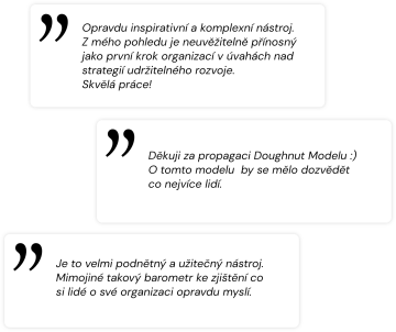 Primárními zdroji informací byly kniha ekonomky Kate Raworth Doughnut Economics/Ekonomie koblihy a online znalostní báze benchmarku Future-Fit Business.