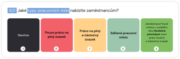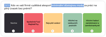 Účastníci*ce odpovídají výběrem jedné z 5 nabízených možností. Smyslem je shodnout se nad odpovědí, která nejlépe popisuje aktuální situaci dané firmy.