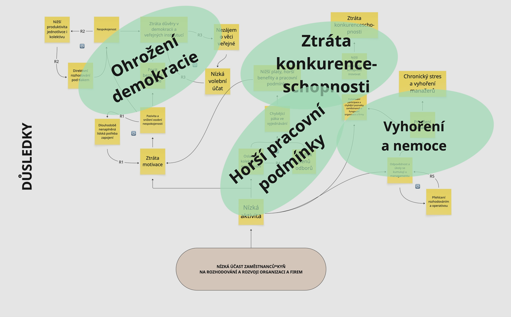 Co ze systému vychází – nízké zapojení, fluktuace, nedůvěra, nižší výkon a produktivita.